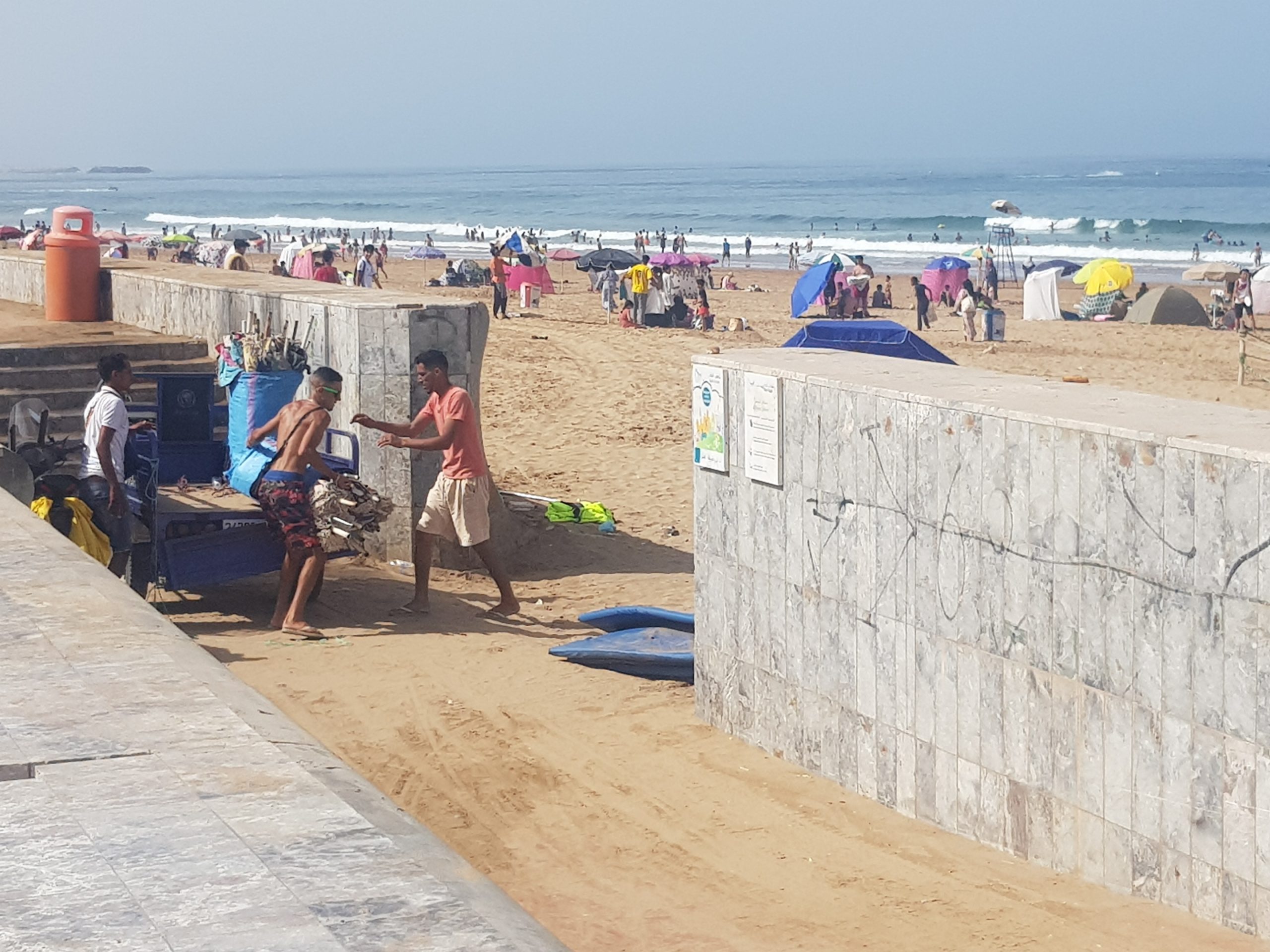 Cette anarchie nuit considérablement à l’image de la destination d’Agadir et au bien-être de ses estivants, surtout avec les travaux de réfection en cours dans la zone touristique et balnéaire. Pour se rendre compte de l’ampleur de ce phénomène, il suffit de visiter, en matinée, la plage d’Agadir pour croiser les triporteurs qui acheminent, au vu et au su des passants, leur matériel hétéroclite vers les différents passages piétons de la plage où d’autres individus se chargent à leur tour de les amener sur la plage afin de les proposer à la location aux estivants.